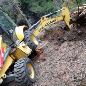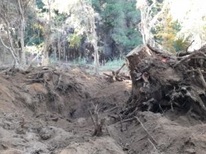 Se bajaron dos pinos oregon, se aserraron y se guardó la madera para su secado. Además, se sacaron los dos tocones y el terreno quedó listo para los próximos pasos.